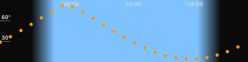 | Höchster Stand (Kulmination) | 06:26 Uhr (h = 83,1°) |