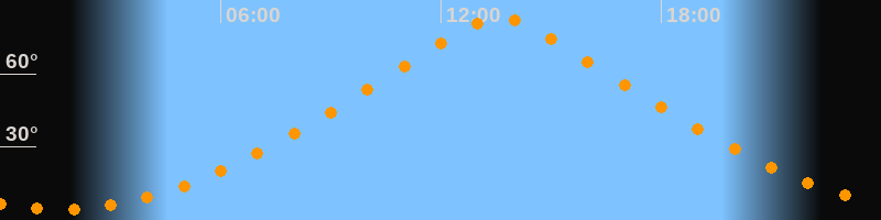 | Höchster Stand (Kulmination) | 13:36 Uhr (h = 83,1°) |