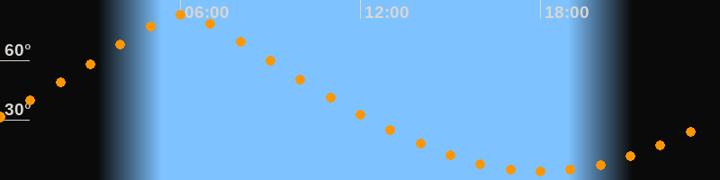 | Höchster Stand (Kulmination) | 06:05 Uhr (h = 83,1°) |