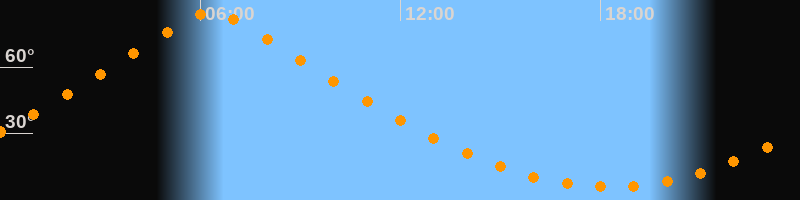 | Höchster Stand (Kulmination) | 06:19 Uhr (h = 84,5°) |