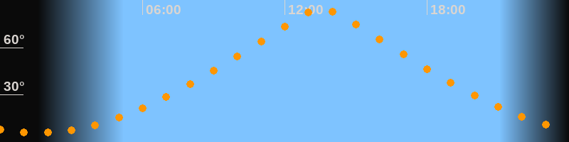| Höchster Stand (Kulmination) | 13:33 Uhr (h = 84,5°) |