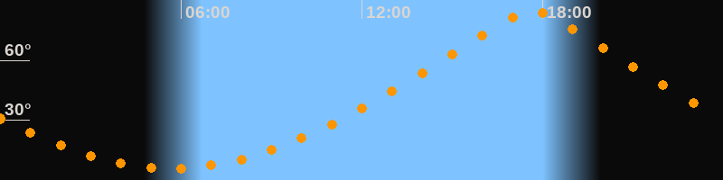 | Höchster Stand (Kulmination) | 17:40 Uhr (h = 84,5°) |