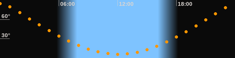 | Höchster Stand (Kulmination) | 00:03 Uhr (h = 84,5°) |