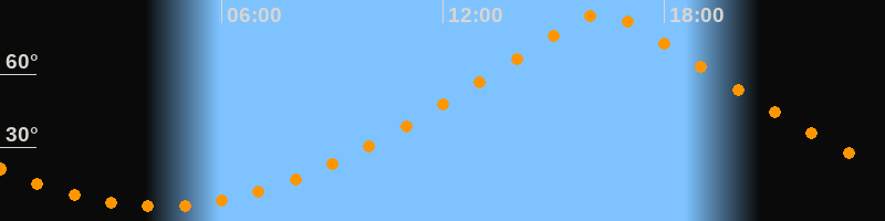 | Höchster Stand (Kulmination) | 16:19 Uhr (h = 84,5°) |