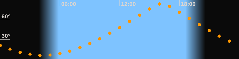 | Höchster Stand (Kulmination) | 16:15 Uhr (h = 84,5°) |