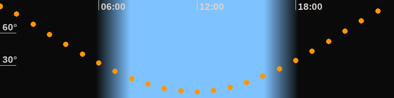 | Höchster Stand (Kulmination) | 23:48 Uhr (h = 84,5°) |