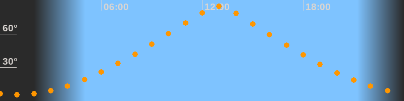 | Höchster Stand (Kulmination) | 12:57 Uhr (h = 84,5°) |