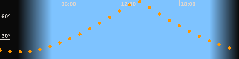 | Höchster Stand (Kulmination) | 13:45 Uhr (h = 89,7°) |
