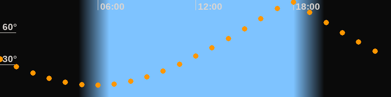 | Höchster Stand (Kulmination) | 17:48 Uhr (h = 89,7°) |