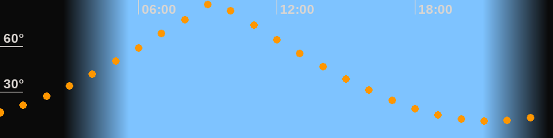 | Höchster Stand (Kulmination) | 09:18 Uhr (h = 89,7°) |