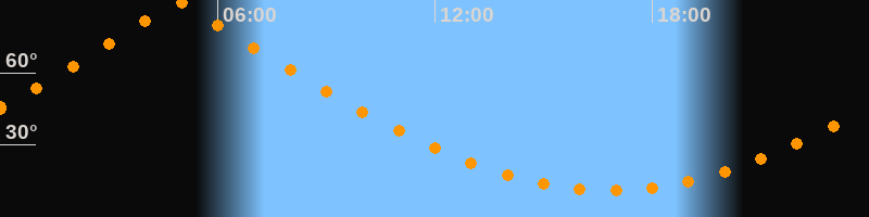| Höchster Stand (Kulmination) | 04:54 Uhr (h = 89,7°) |
