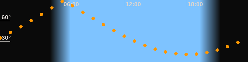 | Höchster Stand (Kulmination) | 06:10 Uhr (h = 89,7°) |