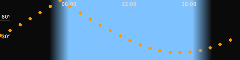 | Höchster Stand (Kulmination) | 05:58 Uhr (h = 89,7°) |