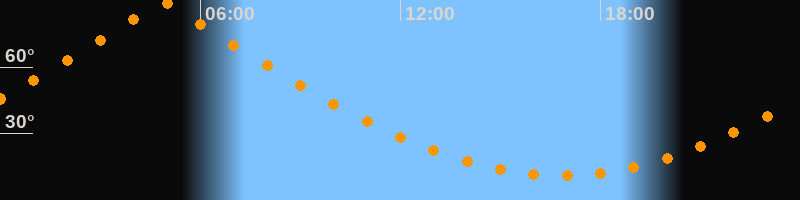 | Höchster Stand (Kulmination) | 04:52 Uhr (h = 89,7°) |