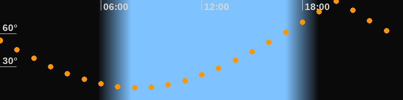 | Höchster Stand (Kulmination) | 20:04 Uhr (h = 89,7°) |