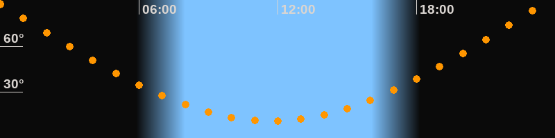 | Höchster Stand (Kulmination) | 23:41 Uhr (h = 89,7°) |