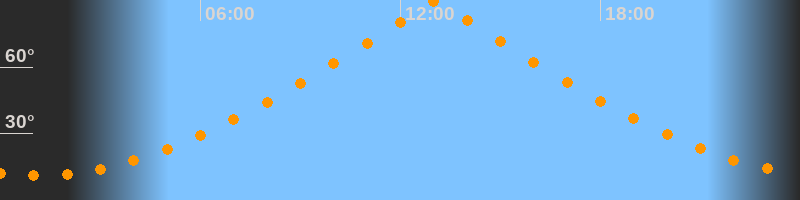 | Höchster Stand (Kulmination) | 13:01 Uhr (h = 89,7°) |
