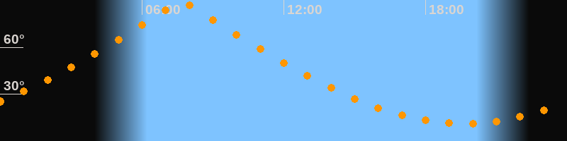 | Höchster Stand (Kulmination) | 07:39 Uhr (h = 89,7°) |