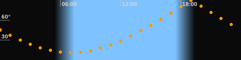 | Höchster Stand (Kulmination) | 19:03 Uhr (h = 89,7°) |