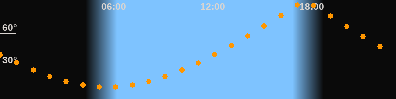 | Höchster Stand (Kulmination) | 18:28 Uhr (h = 89,7°) |