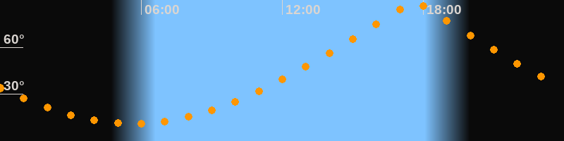 | Höchster Stand (Kulmination) | 17:37 Uhr (h = 89,7°) |