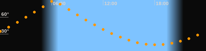 | Höchster Stand (Kulmination) | 06:14 Uhr (h = 89,7°) |