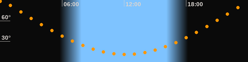 | Höchster Stand (Kulmination) | 00:07 Uhr (h = 89,7°) |