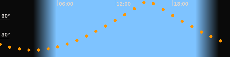 | Höchster Stand (Kulmination) | 15:25 Uhr (h = 89,7°) |