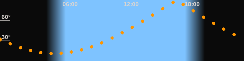 | Höchster Stand (Kulmination) | 17:20 Uhr (h = 89,7°) |