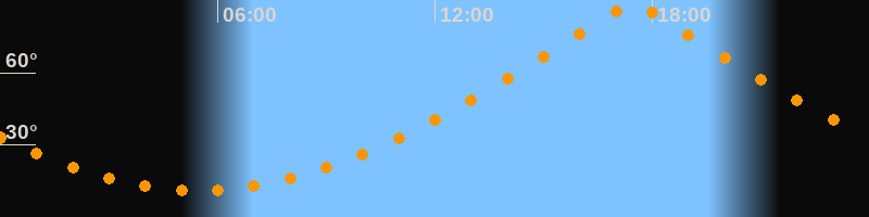 | Höchster Stand (Kulmination) | 17:29 Uhr (h = 89,7°) |