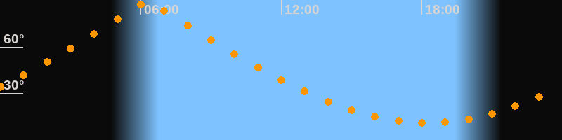 | Höchster Stand (Kulmination) | 06:17 Uhr (h = 89,7°) |
