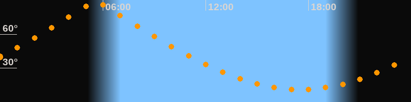 | Höchster Stand (Kulmination) | 05:34 Uhr (h = 89,7°) |