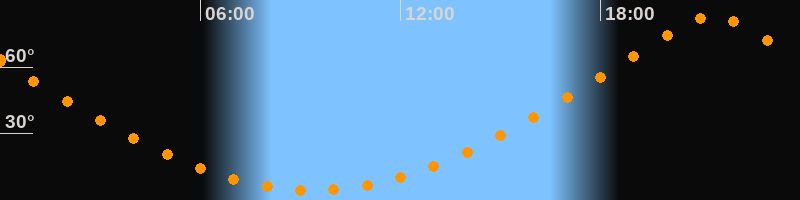 | Höchster Stand (Kulmination) | 21:22 Uhr (h = 83°) |