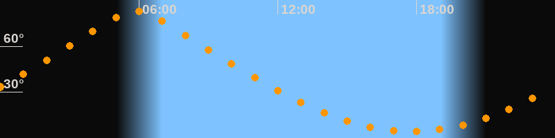 | Höchster Stand (Kulmination) | 05:51 Uhr (h = 83°) |