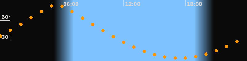 | Höchster Stand (Kulmination) | 05:28 Uhr (h = 83°) |