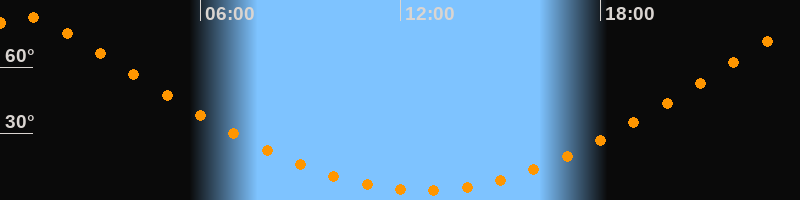 | Höchster Stand (Kulmination) | 00:40 Uhr (h = 83°) |