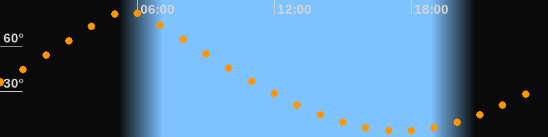 | Höchster Stand (Kulmination) | 05:32 Uhr (h = 83°) |