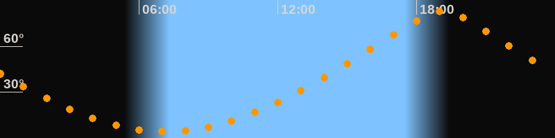 | Höchster Stand (Kulmination) | 19:07 Uhr (h = 83°) |