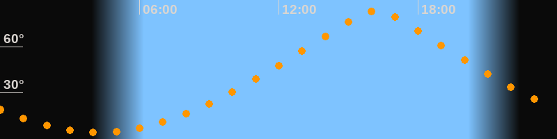 | Höchster Stand (Kulmination) | 16:11 Uhr (h = 83°) |