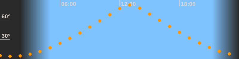 | Höchster Stand (Kulmination) | 13:03 Uhr (h = 83°) |