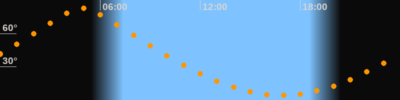 | Höchster Stand (Kulmination) | 04:55 Uhr (h = 83°) |