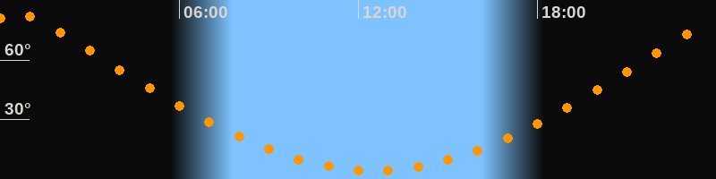 | Höchster Stand (Kulmination) | 00:31 Uhr (h = 83°) |