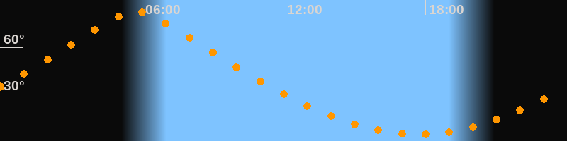 | Höchster Stand (Kulmination) | 05:43 Uhr (h = 83°) |