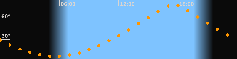 | Höchster Stand (Kulmination) | 17:33 Uhr (h = 83°) |