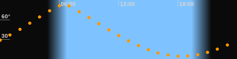 | Höchster Stand (Kulmination) | 06:26 Uhr (h = 83°) |