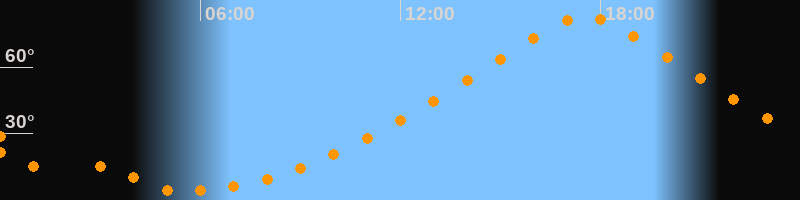 | Höchster Stand (Kulmination) | 17:32 Uhr (h = 83°) |