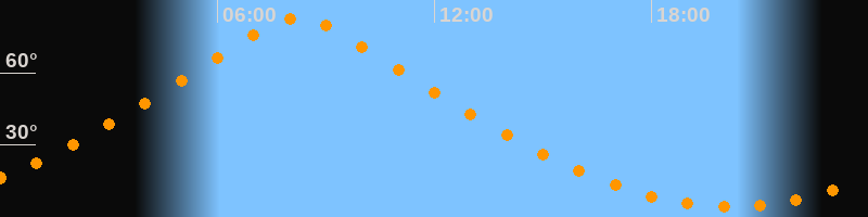 | Höchster Stand (Kulmination) | 08:14 Uhr (h = 83°) |