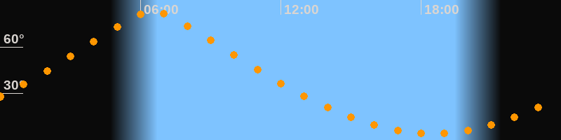 | Höchster Stand (Kulmination) | 06:32 Uhr (h = 83°) |