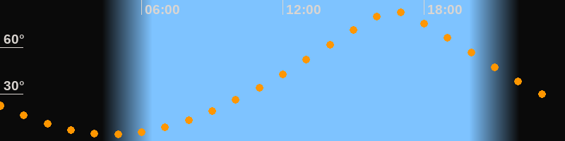 | Höchster Stand (Kulmination) | 16:44 Uhr (h = 83°) |