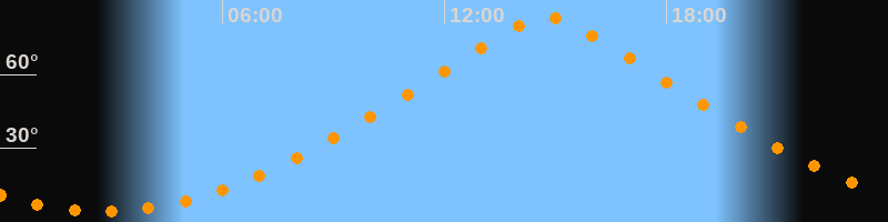 | Höchster Stand (Kulmination) | 14:46 Uhr (h = 83°) |